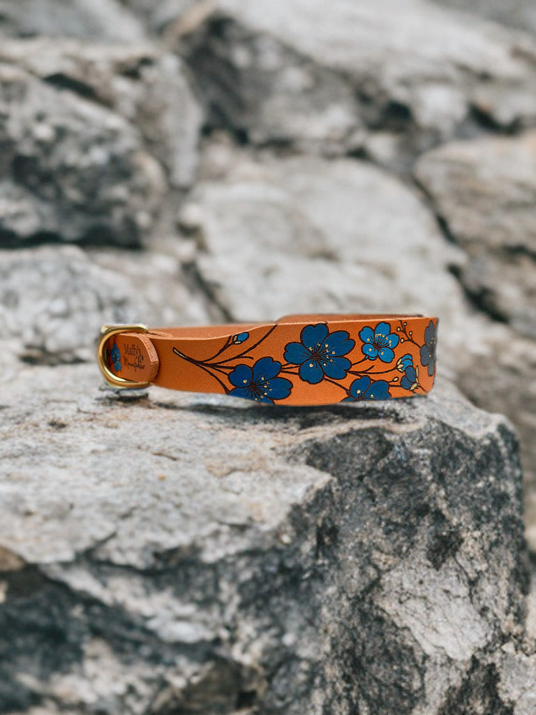 Dieses besondere Halsband wird aus hochwertigem Blankleder gefertigt und von Hand bemalt, wodurch jedes Stück zu einem echten Unikat wird. Die natürliche Struktur des Leders in Kombination mit der sorgfältigen Handarbeit verleiht dem Halsband einen einzigartigen Charakter.